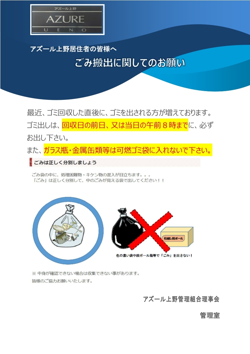 ごみ搬出に関してのお願い