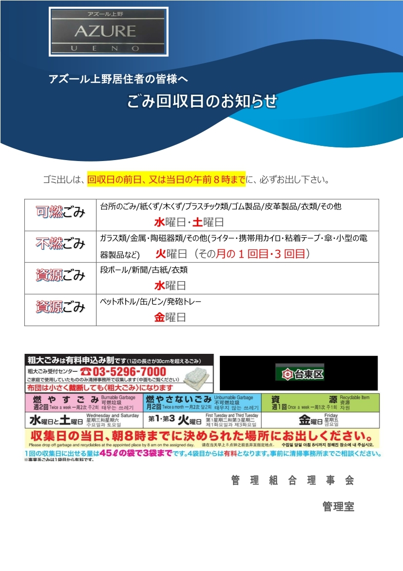 日頃より管理業務にご理解とご協力を賜り、誠にありがとうございます。